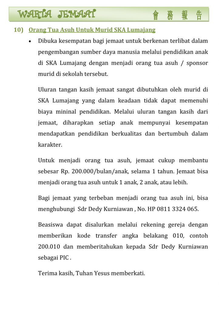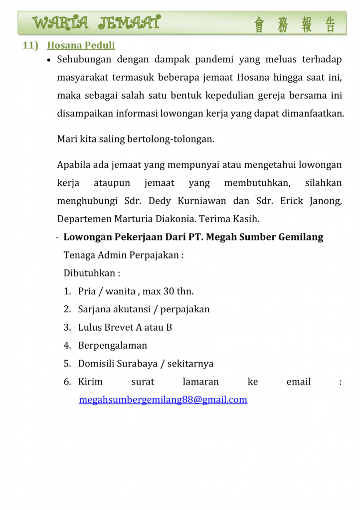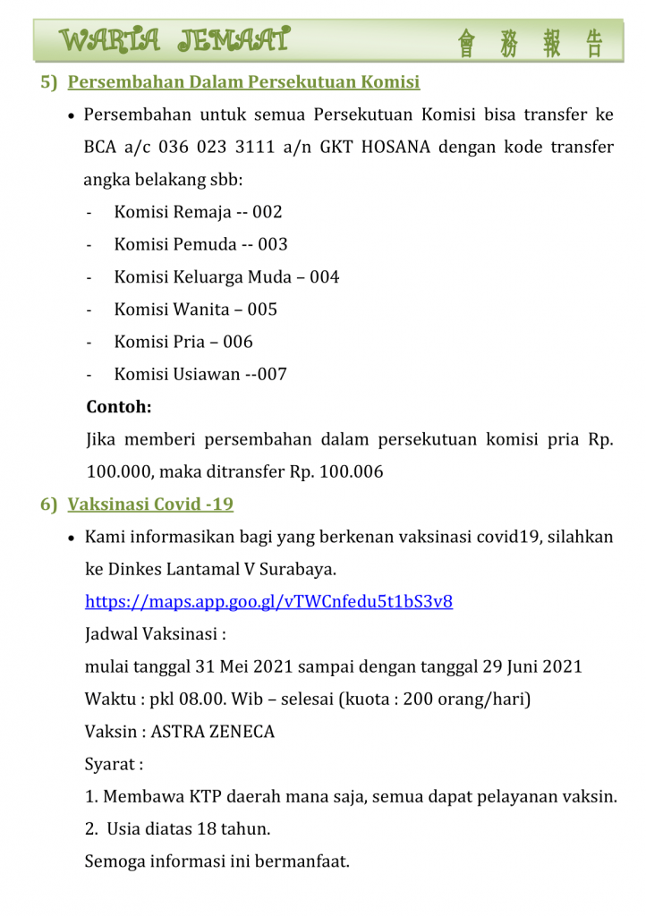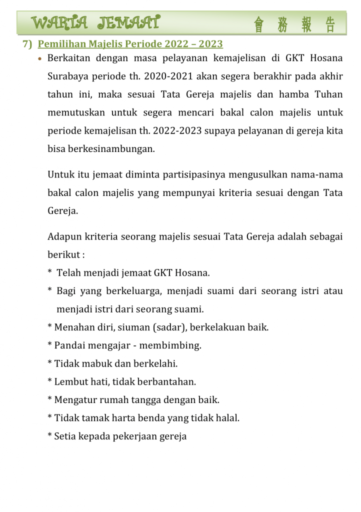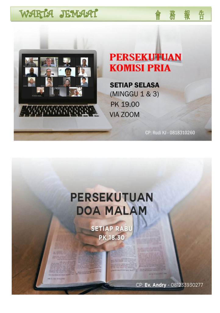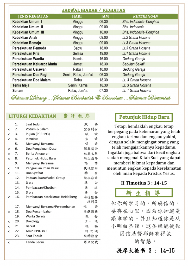 Warta Gereja Tahun 2021 Warta GKT Hosana, 6 Juni 2021. 4 June 2021 Continue Reading Previous Warta GKT Hosana, 30 Mei 2021.Next Warta GKT Hosana, 13 Juni 2021.